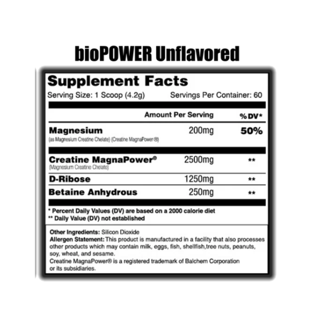 bioPOWERatp is completely water-molecule free, helping support a harder, leaner muscle appearance with zero water retention and no bloating. The result is clean, fast-acting performance gains without the digestive discomfort commonly associated with standard creatine.