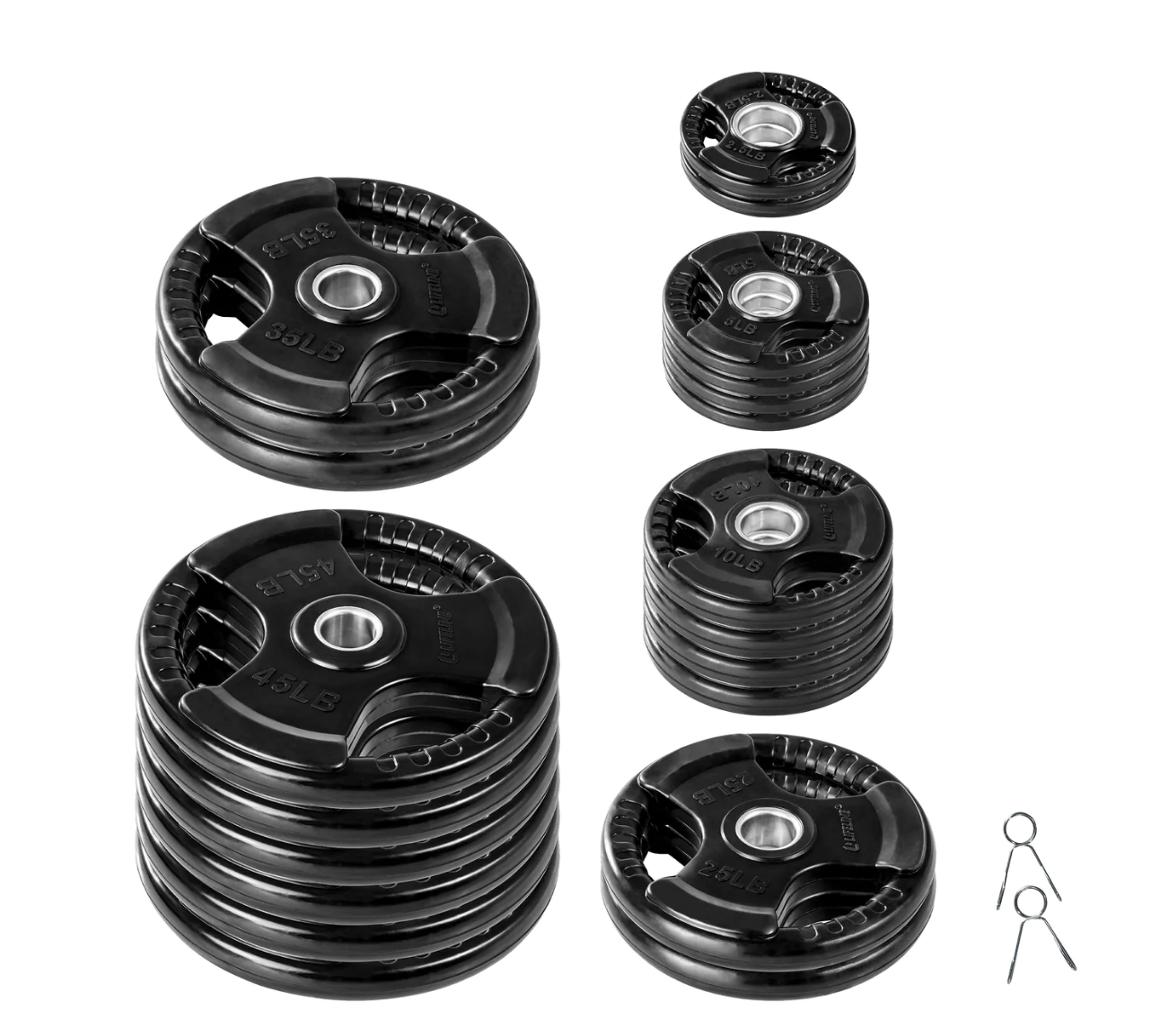 – Includes a set of 7 pairs: 2.5 lb., 5 lb., 10 lb., 25 lb., 35 lb., 45 lb., and 55 lb.