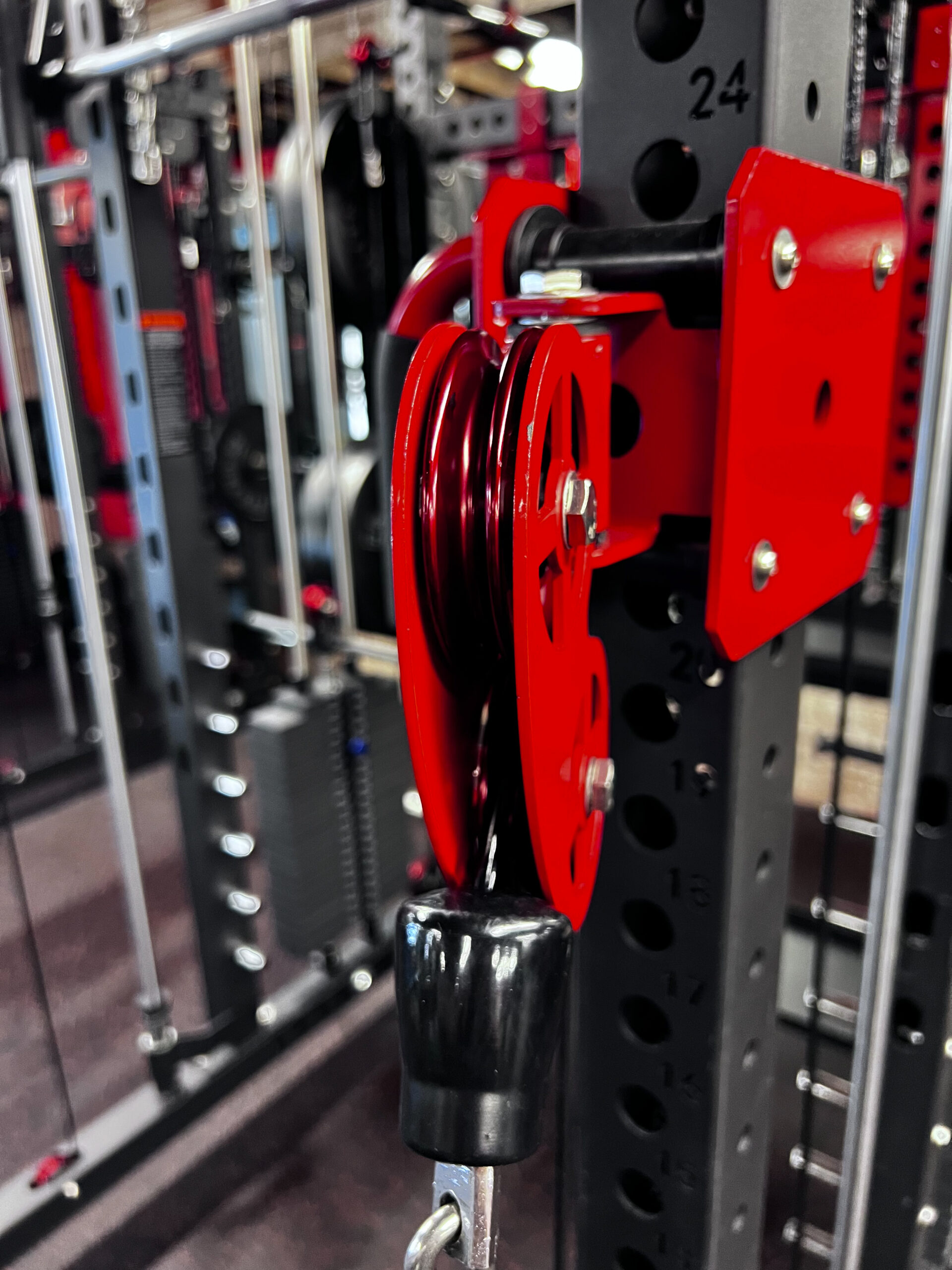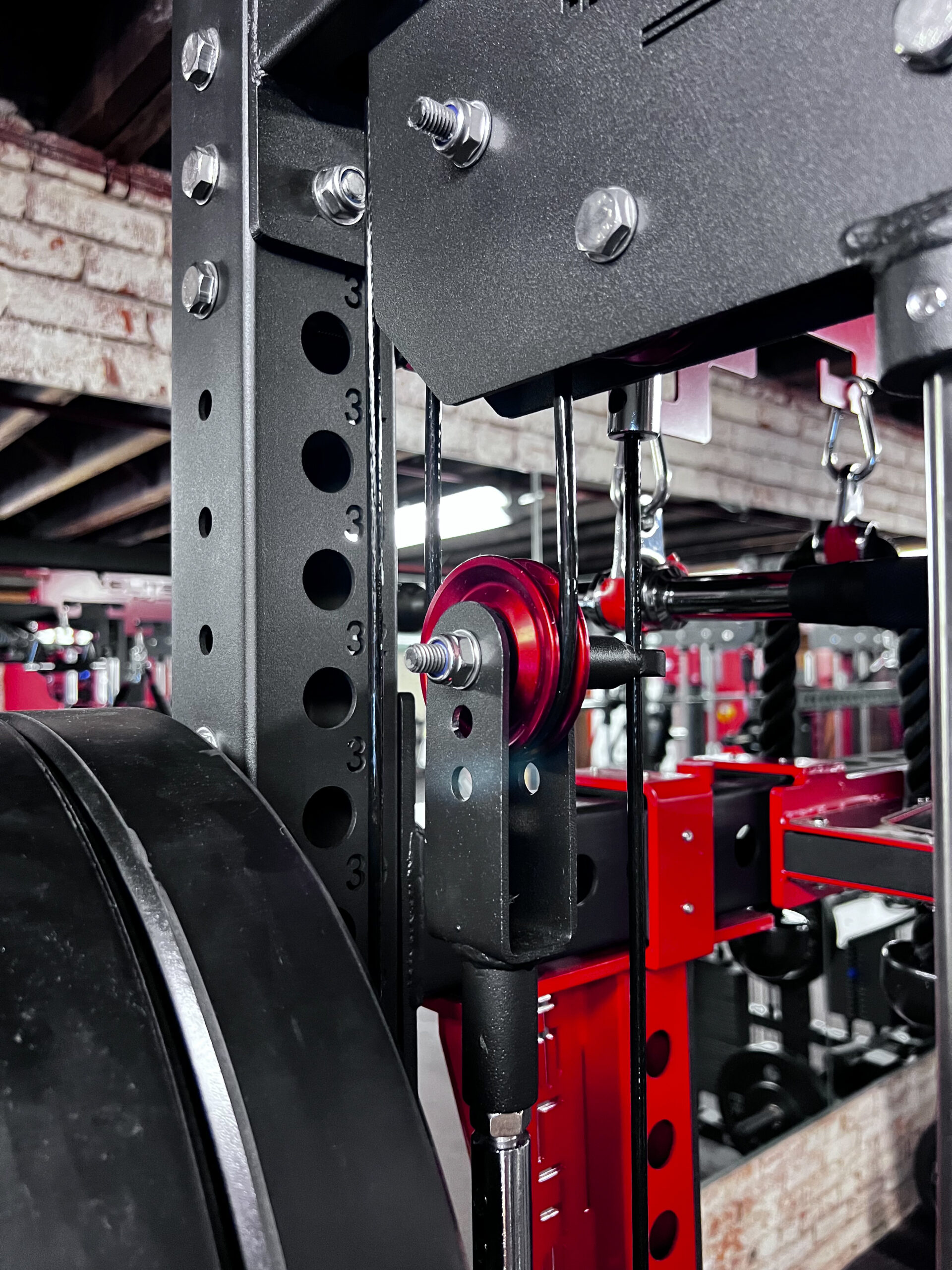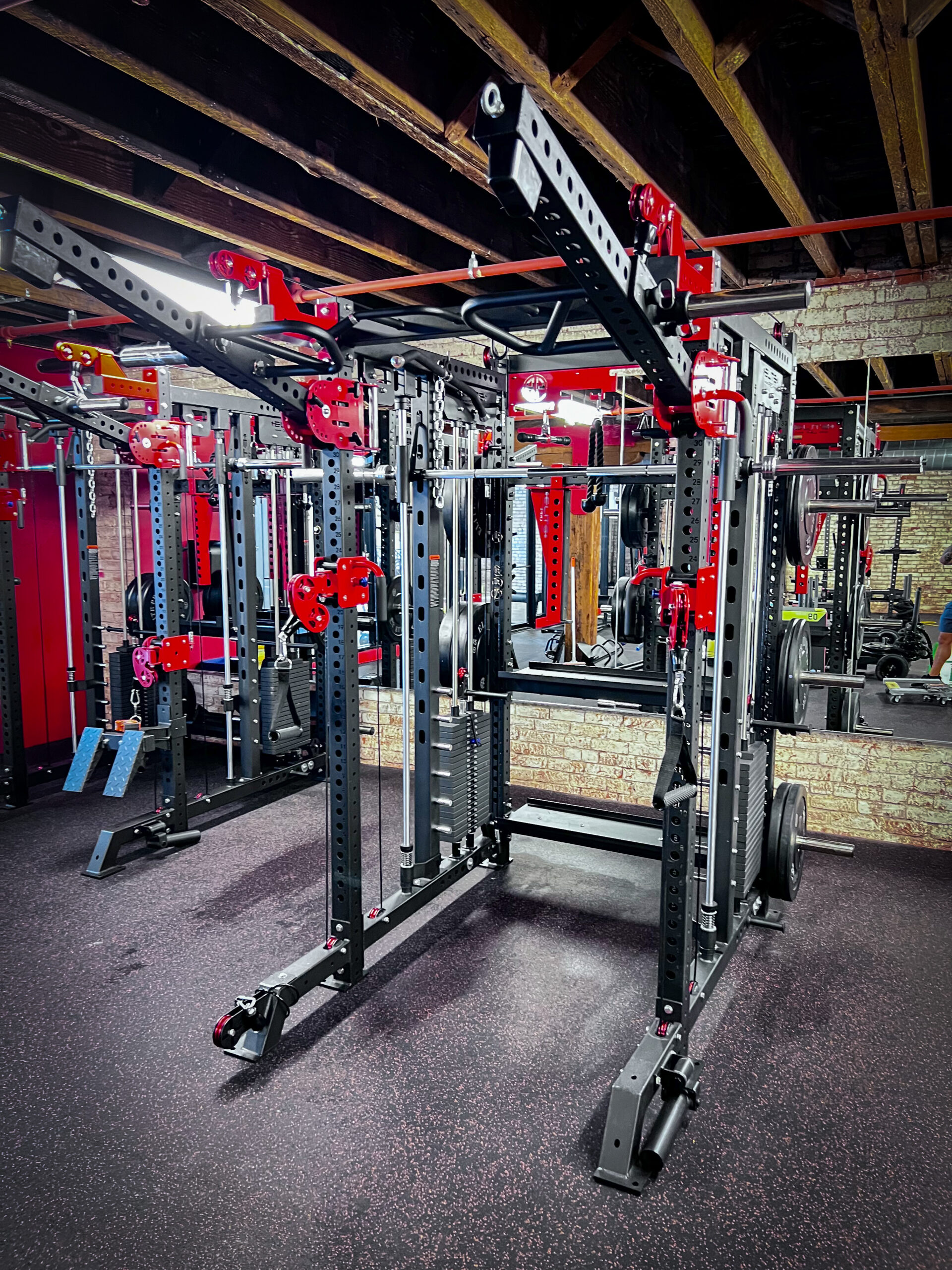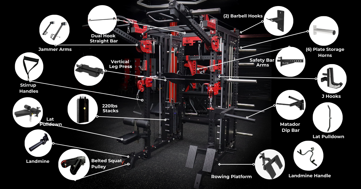 The FTS2 Functional Smith Rack System features an innovative structure that combines everything you can possibly need in at total gym Unit  its design and features provides the ultimate workout experience, capable of strengthening different muscle groups and executing comprehensive workouts, limiting the need to switch between gym equipment. The FTS2 is a complete training system made with a heavy-duty steel frame reinforced with a durable powder-coated finish. Utilizes sturdy aircraft cable with a tensile strength of 2,000lb along with Aluminum Pulleys  that’s guaranteed to withstand intense long-lasting use and it’s back up by our lifetime warranty and 1 year in parts and labor. adjustable weight horns let you organize weights on the machine for easy accessibility. all attachments as shown in our digital 360 view are included except for the leg ext/curl attachment and upcoming attachments that we are currently working on to enhance the experiences of our clients. this 3×3 Tubbing with one inch hole is compatible with other brands like Rogue and Titan.