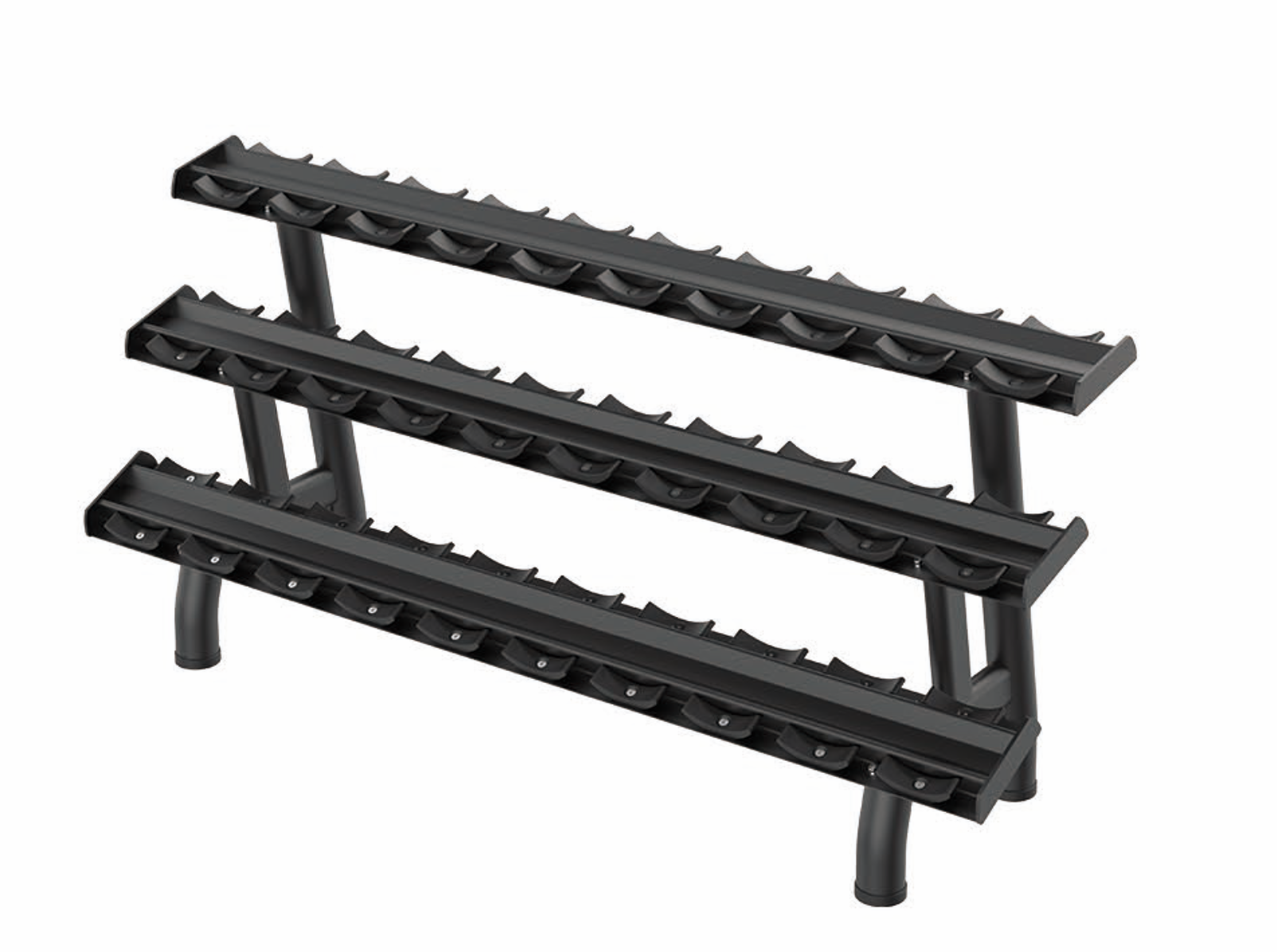 The RE 3 Tier 15-Pair Dumbbell Rack provides durable, high-capacity storage for organized and efficient free-weight training areas.